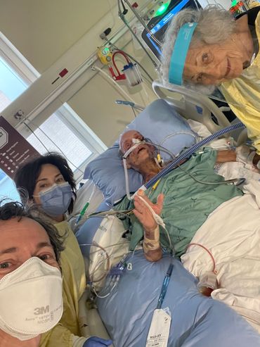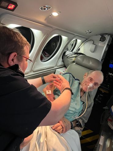 Mark remained in hospital and his kidneys began to fail. He started dialysis in early February around the time of his 67th birthday. Mark’s body continued to fail further, and he was transported to Toronto on February 25, 2025, where his condition was reassessed. He was deemed to be TOO ILL to undergo a DONOR liver transplant, as his body required a FULL liver in order to best survive. He remained in hospital in Toronto and fortunately, a deceased donor became available on April 10, 2025. He underwent liver transplantation at 5:00 am. The hope was that his kidneys would then recover. The liver transplant was successful but the kidneys did not improve. (Photos below: Transfer to Toronto; Post-Op Day 1; Succesful recovery.