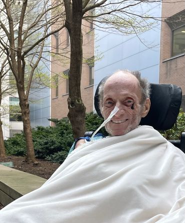 Since the last update, Mark had been able to start living on his own. This photo was taken at the end of December when he was living at home, but with assistance. Since then, Mark 's health declined further, requiring hospitalization, where he remains. His appetite is very low, and he is now getting nutrition through a nasogastric tube feed. He still gets regular parcenteses (abdominal draining) and physiotherapy to help him walk. He is awaiting transfer to Toronto for further transplant assessment. He needs a transplant immediately.